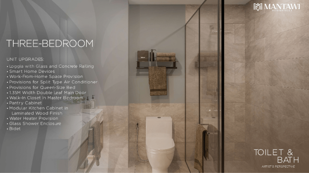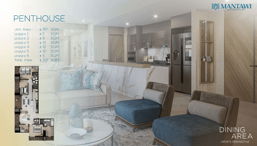 Take pride in living in one of the most exclusive living spaces in Mantawi Residences. Each penthouse unit features plenty of space for a more comfortable life, along with top of the line home deliverables plus breathtaking city views that you can conveniently appreciate from your home’s loggia.