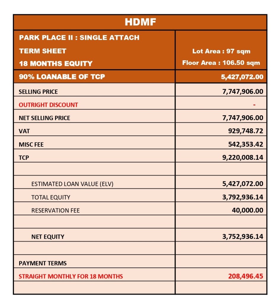 Product Offering of Park Place II Cebu Single Attached Units